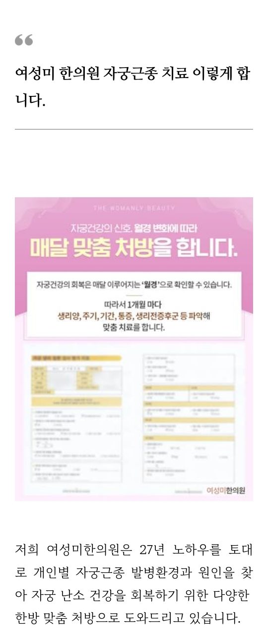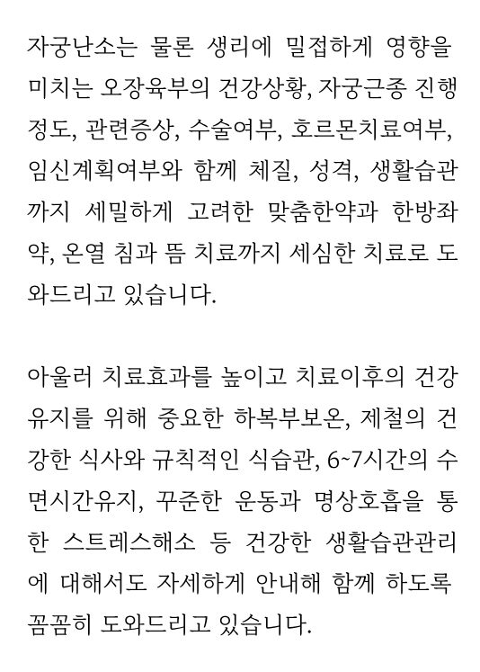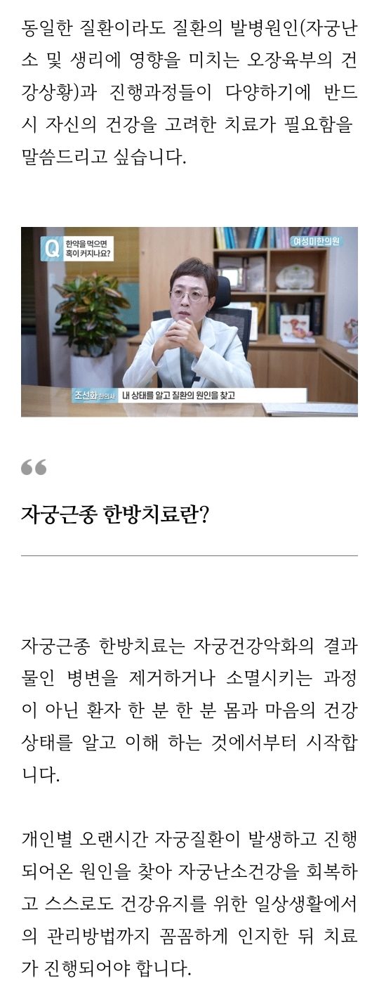 여성들 중에는 자궁근종으로 고통 받으며 자궁근종한약 복용에 대해 궁금해하시는 분들이 많습니다. 특히 출혈이 심하게 일어나는 경우 불편함이 더해지기도 합니다.